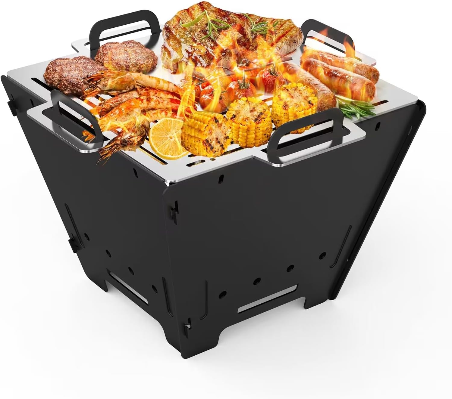 Onlyfire Portable BBQ Fire Pit, 15 Inch Collapsible Firepits with Stainless Steel