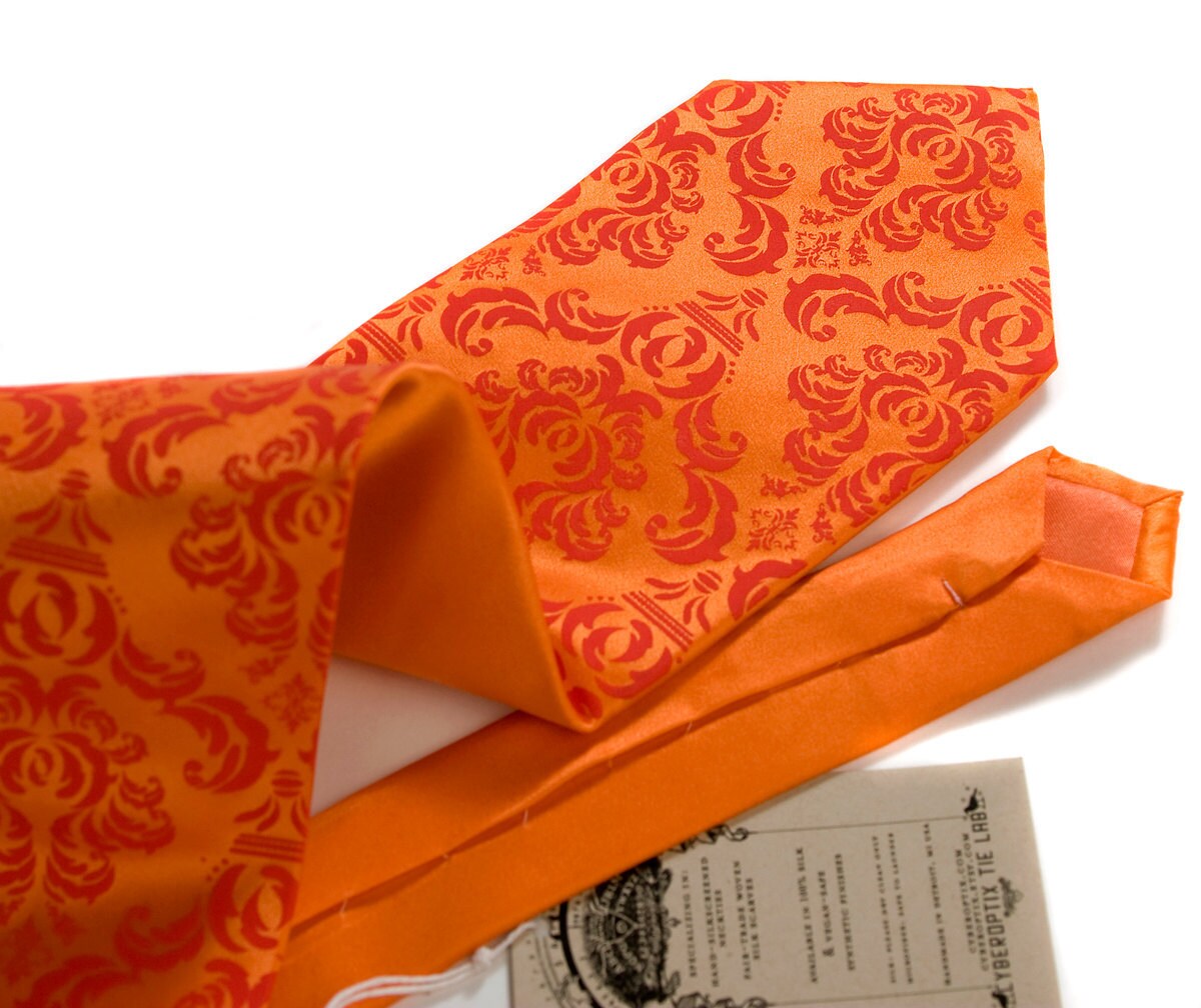 Carrot orange Damask silk necktie. Tangerine Tango