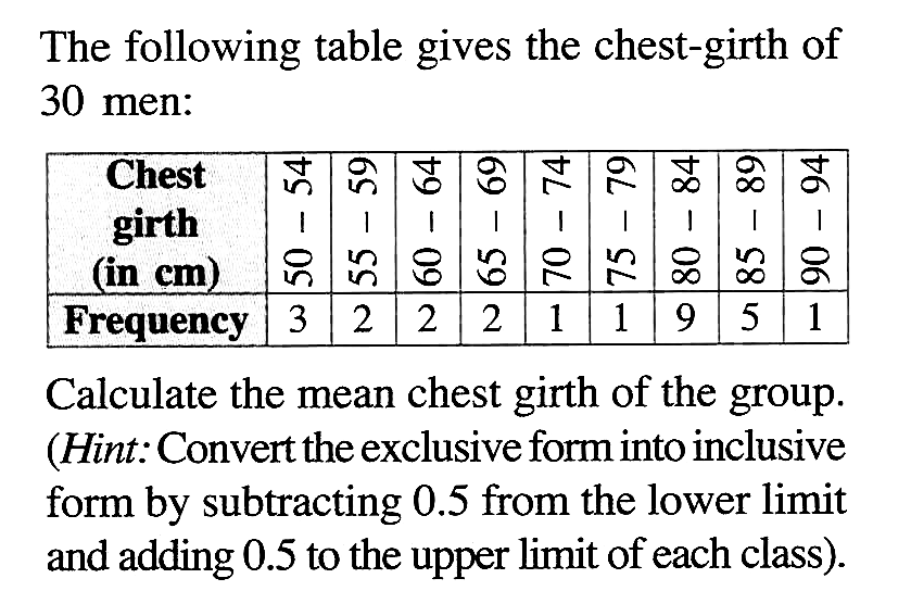 The following table gives the chestgirth of 30 men Ches... Meaning Chest Girth Discover the right tools and techniques to measure girth accurately. Chest girth measurement is the process of measuring the circumference or distance around the largest part of the chest. To measure a client's chest girth, follow these steps: To find your chest size, all you need is. The phrase “ideal girth measurements” is often used by health professionals, fitness experts,. Meaning Chest Girth.