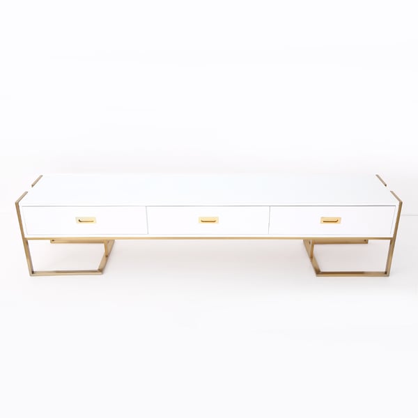 Modern Jocise White & Gold TV Stand 3 Drawers Media Console homedecor.pk Off White And Gold Tv Stand there is a gap between the tv stand legs and the ground, which allows you clean the bottom side easier. this 72.8 tv console can extend up to 102 to coordinate with your oversized tv. 70 modern tv stand with 4 storage drawers and groove pattern doors, tv entertainment center with gold handles and legs, white. . Off White And Gold Tv Stand.