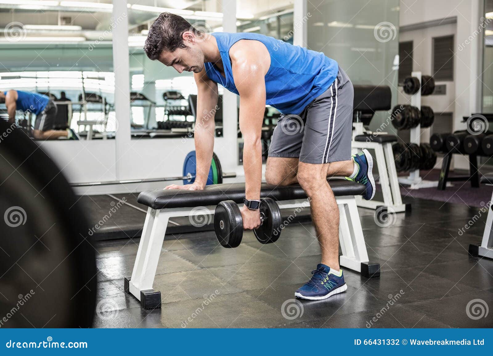 Muscular Man Lifting Dumbbells on Bench Stock Photo Image of care How To Lift Dumbbells On Bench Then, using your thighs to help raise the dumbbells up, lift. Here we’ll dive into how to do the dumbbell bench press exercise correctly and fixes for common miscues so you can continue making gains. This is why dumbbell bench presses are superior to the standard barbell bench press: Lie down on a flat bench with a dumbbell in each. How To Lift Dumbbells On Bench.