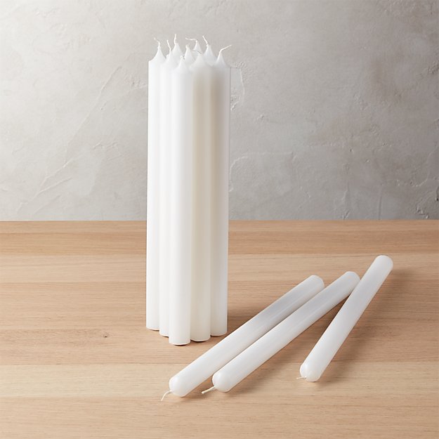set of 12 white taper candles CB2