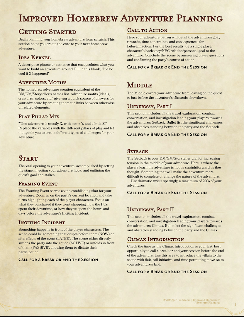 Improved Homebrew Adventure Planning RedRaggedFiend Dungeon Masters
