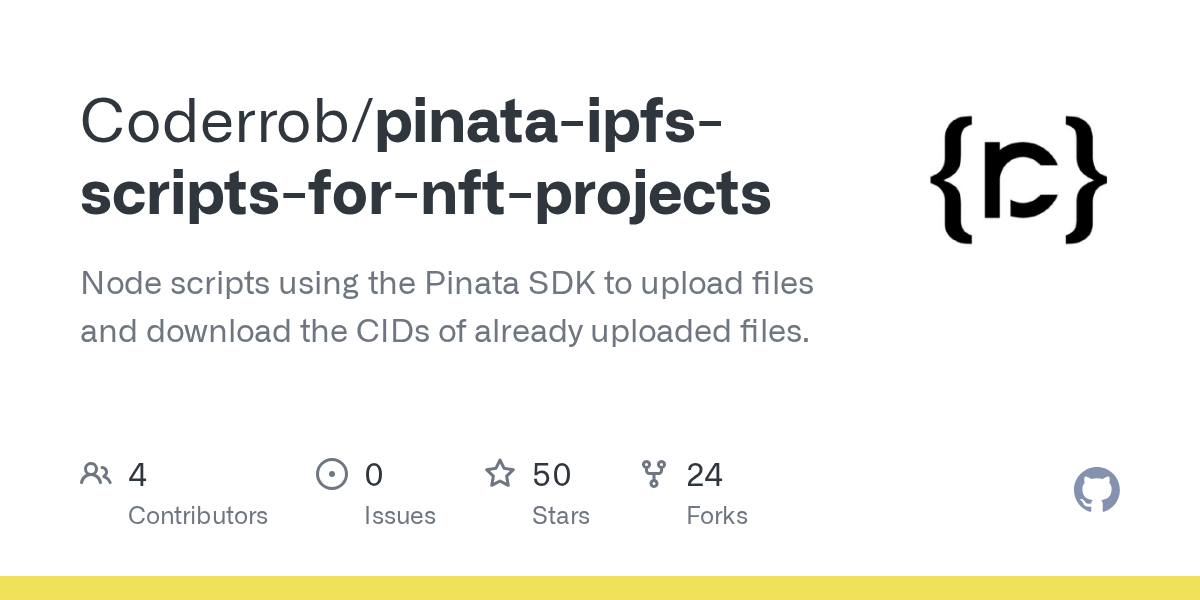 GitHub Coderrob/pinataipfsscriptsfornftprojects Node scripts
