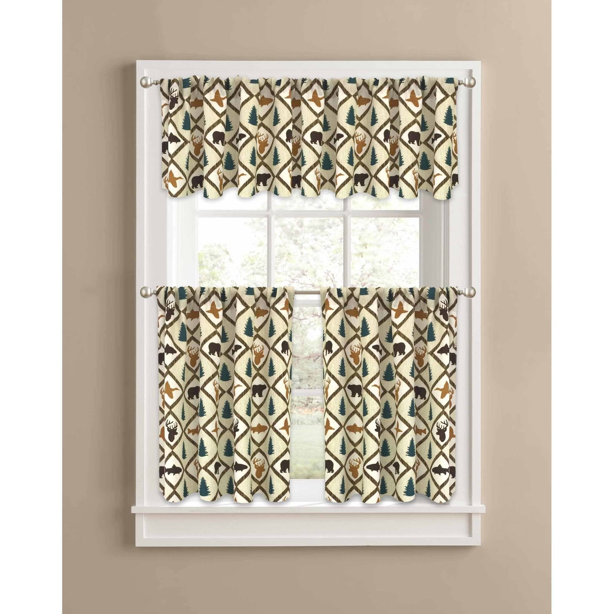 Better Homes & Gardens Brown Cabin Quilt Valance Kitchen Curtains, Set