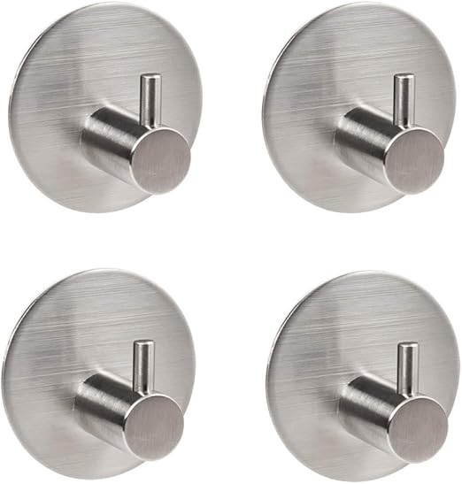 4 Pack Rustproof Stainless Steel Stick on Hooks Self Adhesive from