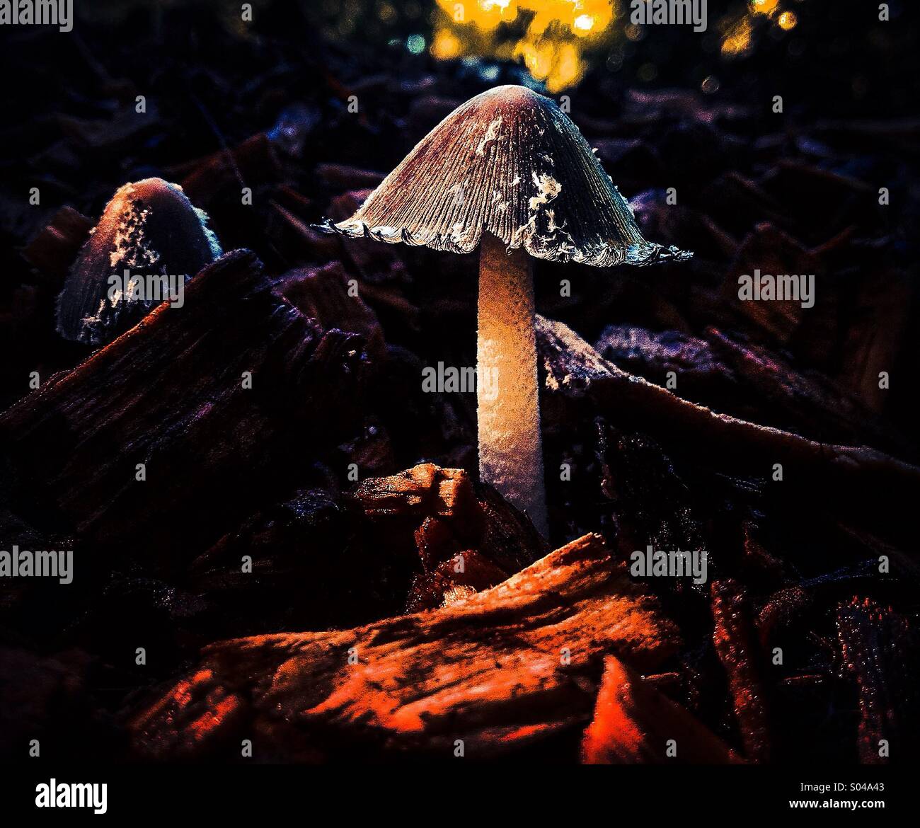 Fungi growing in wood chips Stock Photo Alamy