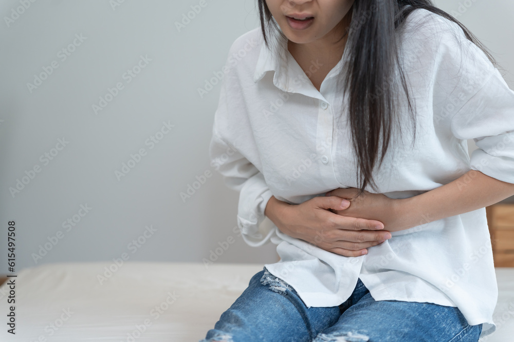 stomach ache. Asian women have abdominal pain, indigestion, gastritis