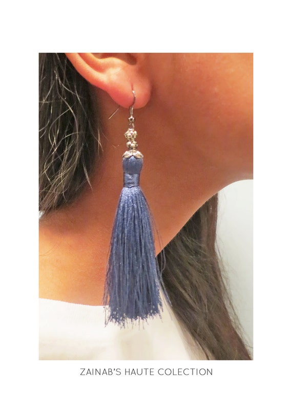 Grey Silk Tassel earring Tassel Grey Earrings check out our gray tassel earrings selection for the very best in unique or custom, handmade pieces from our earrings shops. black and white dot print studs with grey tassels. Buy women's dangle & drop earrings with same day. Price and other details may vary based on product size and color. check out our grey tassel earrings. Tassel Grey Earrings.