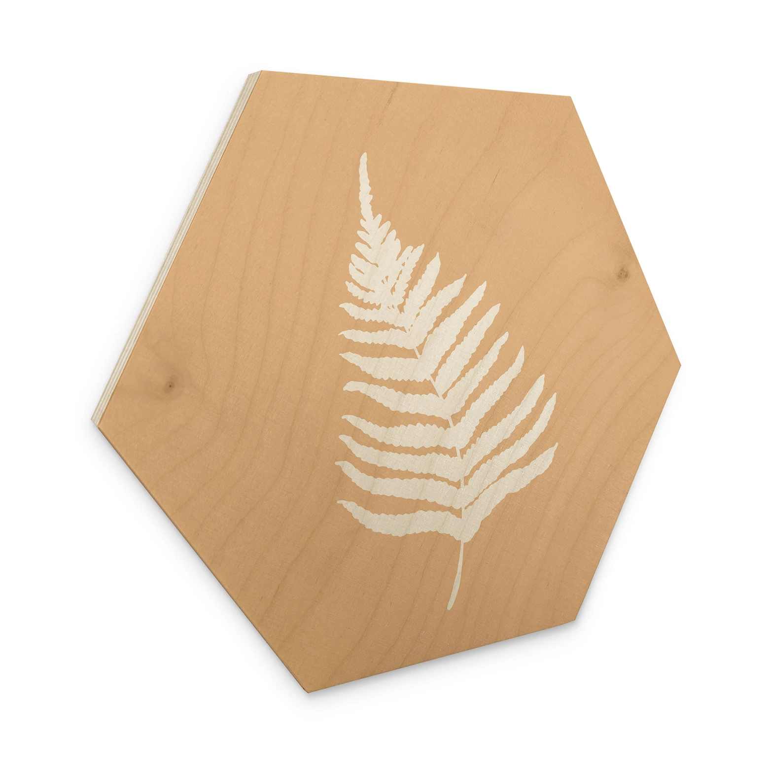 Hexagon Hout Silhouet van varenblad 1X Studio wallart.nl