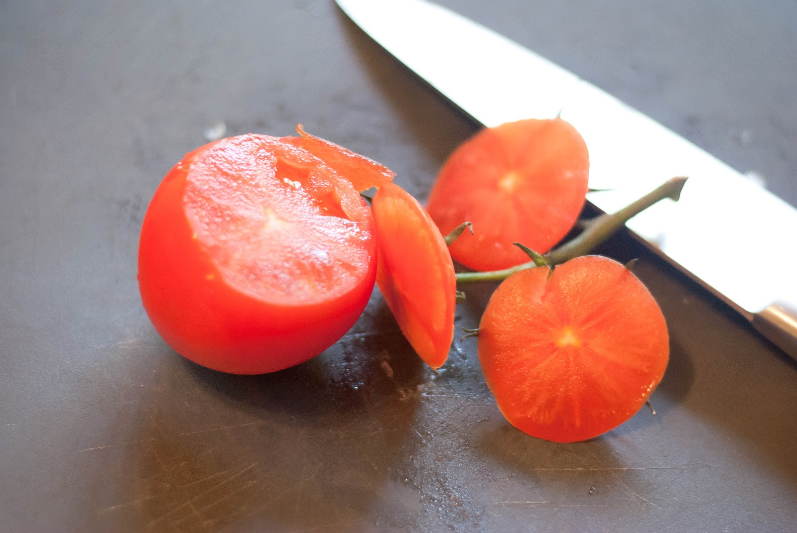 Easy Oven Roasted Tomatoes The Suburban Soapbox Scoop Out Tomatoes Use a sharp paring knife to cut off a thin piece of the stem end, then cut around the center of the tomato. Depending on the shape and size of the tomato and your plans, you can either just remove the top. Wash your tomatoes and dry them well before carefully slicing the top off each one. Fill with a. Scoop Out Tomatoes.