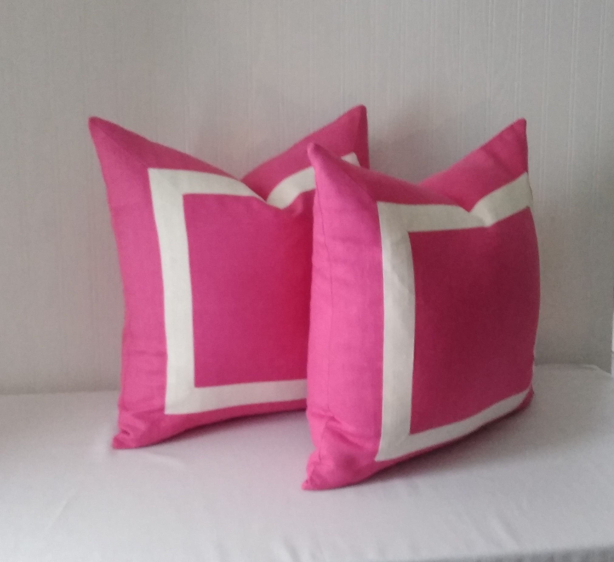 Fuchsia Pink Pillow Cover With Ivory or White Mitered Band Etsy