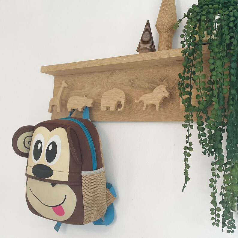 Safari Themed Peg Shelf Solid Oak Nursery Shelf Nursery Etsy