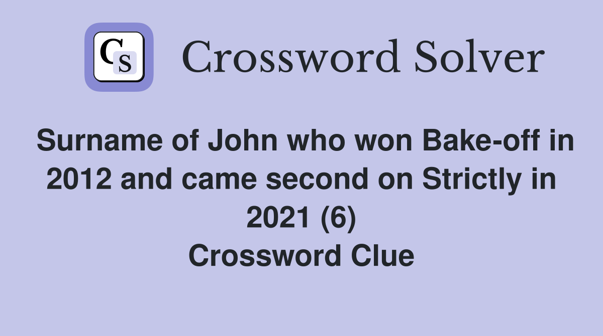 Surname of John who won Bakeoff in 2012 and came second on Strictly in 2021 (6) Crossword