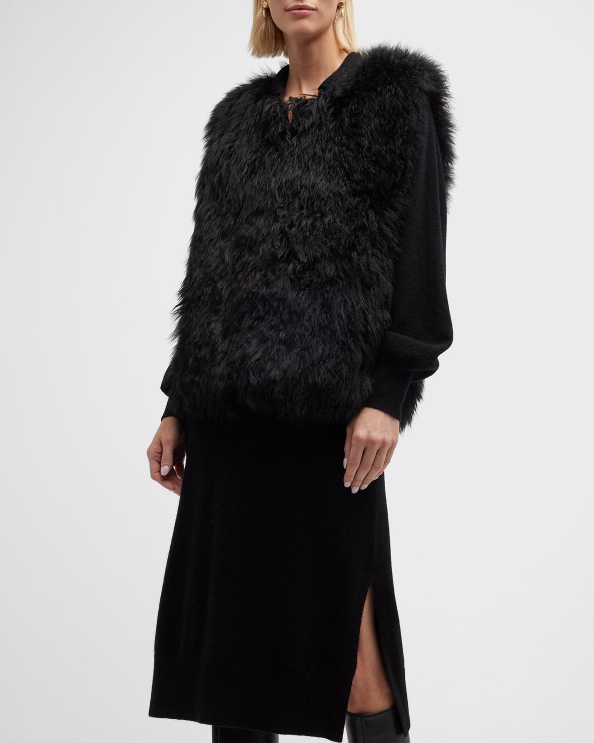 Gorski Cashmere Goat Fur Collarless Vest in Black Lyst