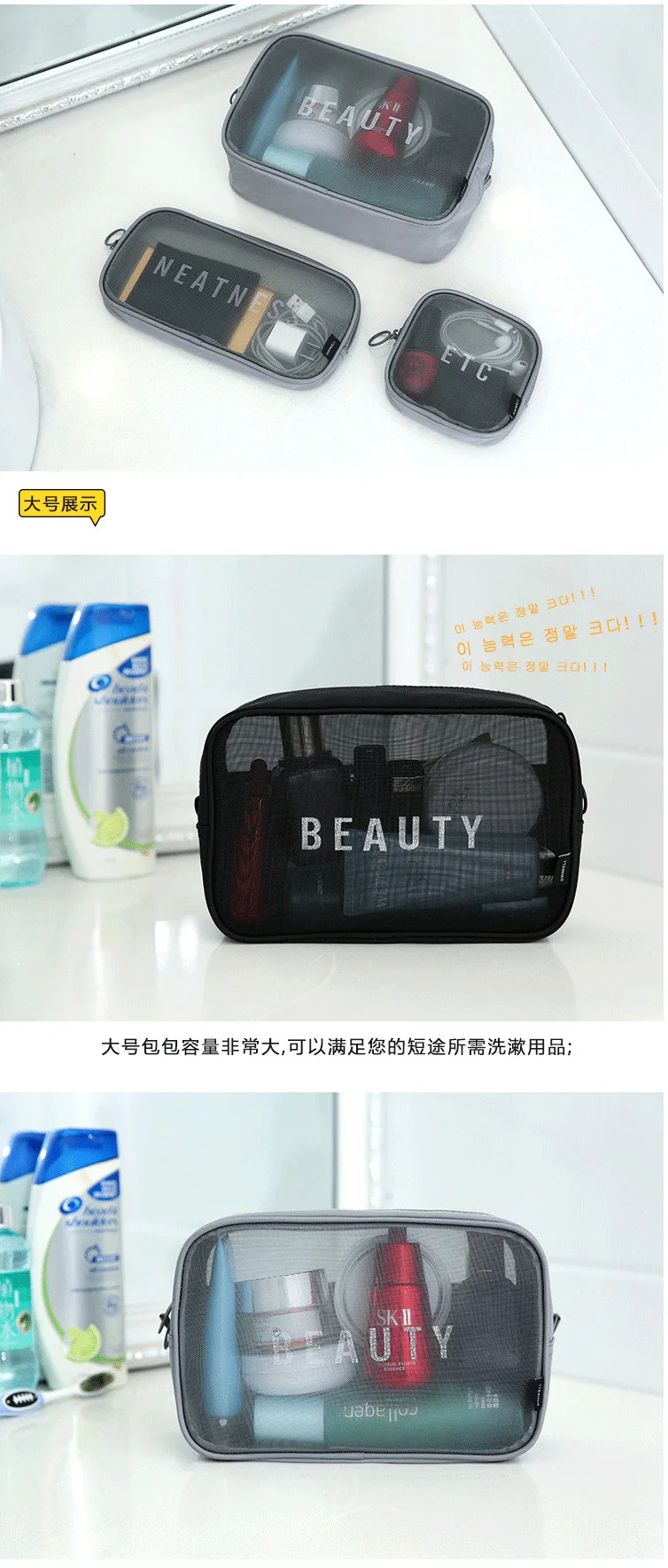 Buy Large Capacity Travel Ladies Mesh Cosmetics Bag Black Mesh Toiletry Bag the shany clear toiletry and makeup bag and organizer is a clear pouch with mesh outer pockets. Solid black bottom to prevent items from spilling out. check out our mesh toiletry bag selection for the very best in unique or custom, handmade pieces from our toiletry kits & travel cases. Made from nontoxic pvc plastic, this makeup bag.. Black Mesh Toiletry Bag.