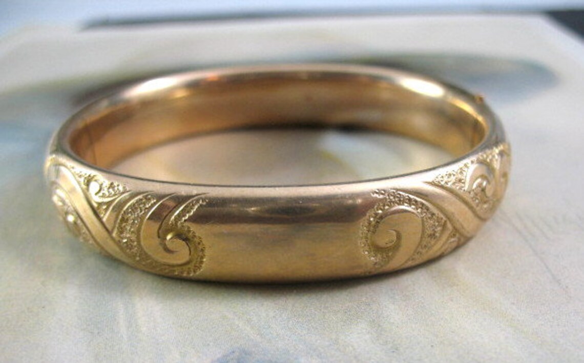 Antique Edwardian GoldFilled Etched Bangle Bracelet Vintage Gold Filled Bangle Bracelet Check out our gold filled bangle bracelet vintage selection for the very best in unique or custom, handmade pieces from our bangles shops. It opens with a push button. Check out our gold filled vintage bangle bracelets selection for the very best in unique or custom, handmade pieces from our bangles shops. Get the best deals on antique gold bangle. Vintage Gold Filled Bangle Bracelet.