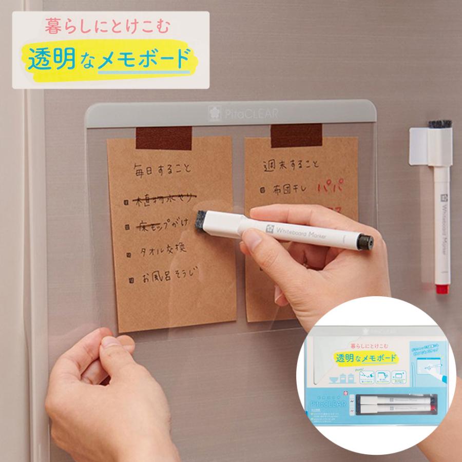ホワイトボード おしゃれ メモボード ガラスボード 透明 冷蔵庫 付箋 メモ ピタクリア サクラクレパス 家事(メール便対象商品)(メール便1