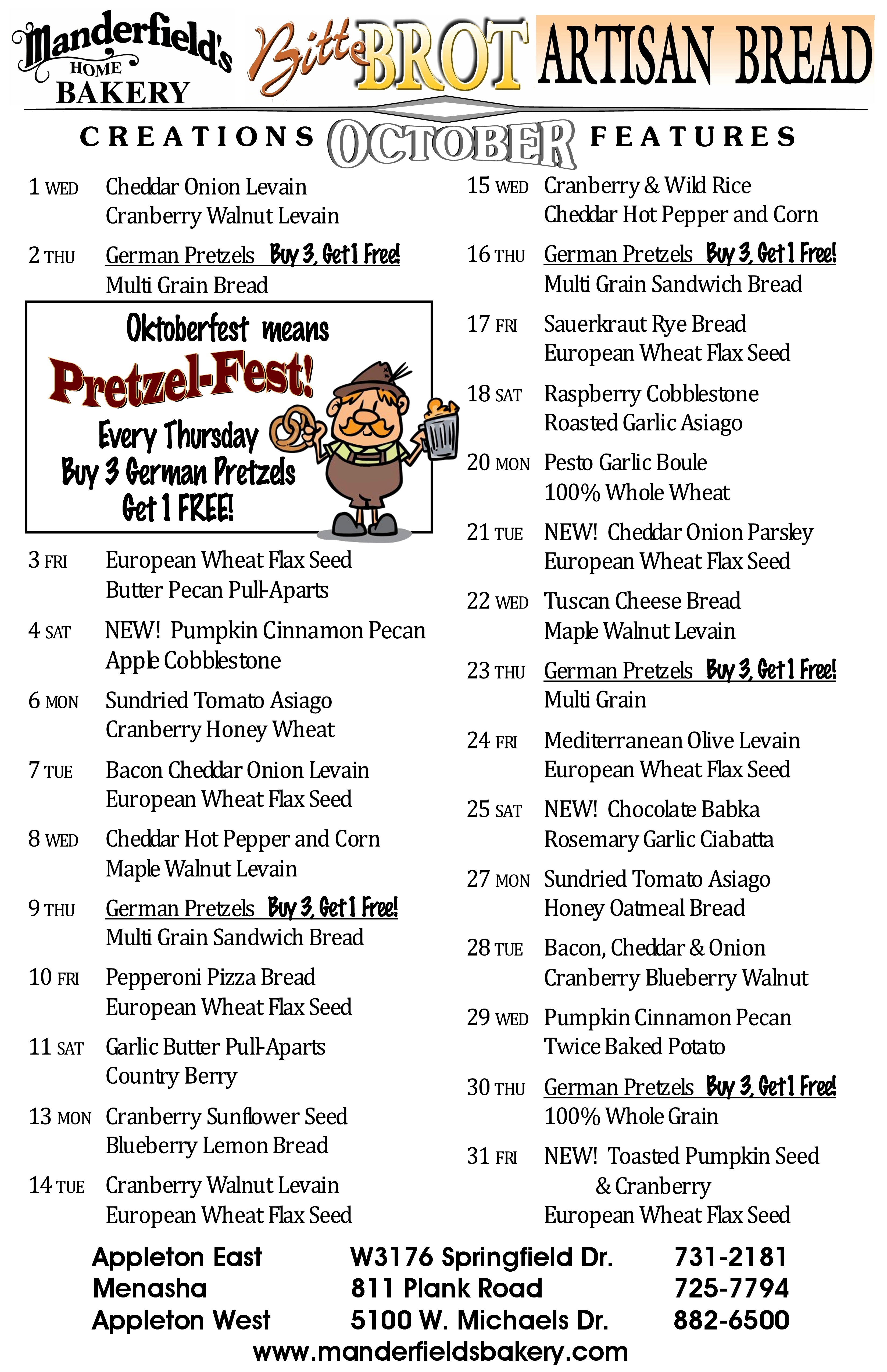 October Bread Calendar Manderfield's Home Bakery