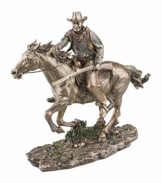 Bronze John Wayne Statue Riding Cowboy on Horse Sculpture Veronese