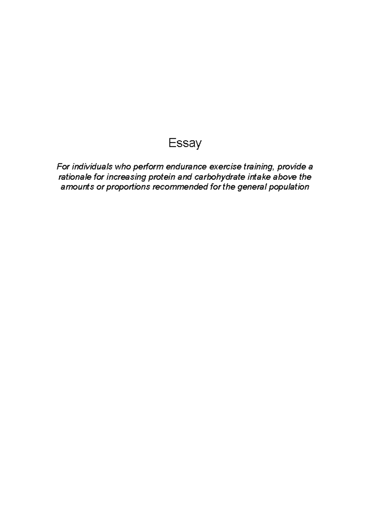 Protein and carbohydrate intake for endurance athletes Essay For