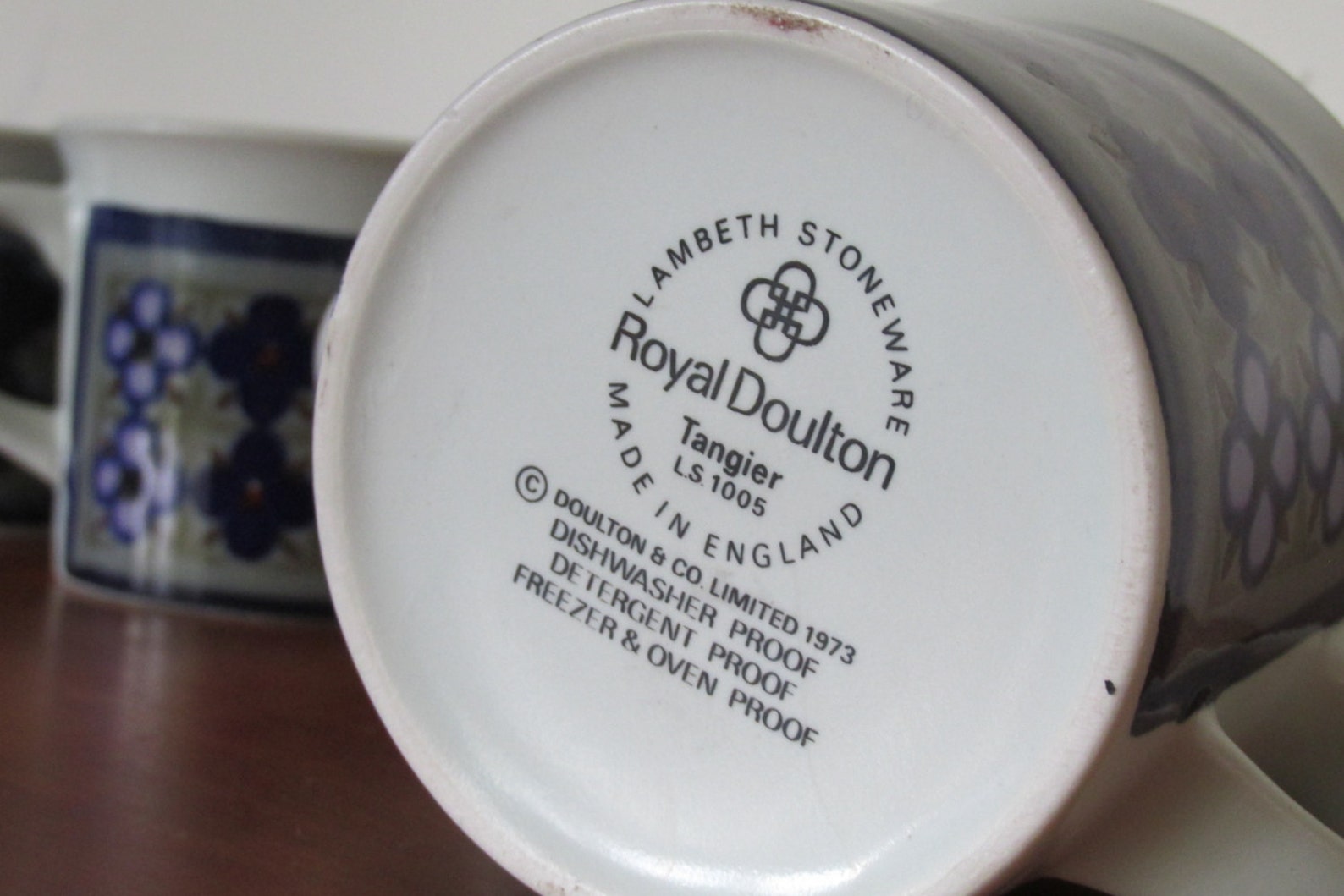 Vintage 1973 Royal Doulton Tangier L.S. 1005 Lambeth Stoneware Mug Made Royal Doulton Lambeth Stoneware Tangier Vous y trouverez les meilleures pièces uniques ou personnalisées de nos. Royal doulton vintage 1970s “tangier” pattern, lambeth stoneware, dinner plate. Pieces may have some minor marks ”. Royal doulton dinner plate, 1970s tangier pattern lambeth stoneware, blue and grey with hints of red on off white stoneware, measuring 10.25. Royal doulton lambeth stoneware tangier oval vegetable serving bowl 10.5'. Royal Doulton Lambeth Stoneware Tangier.