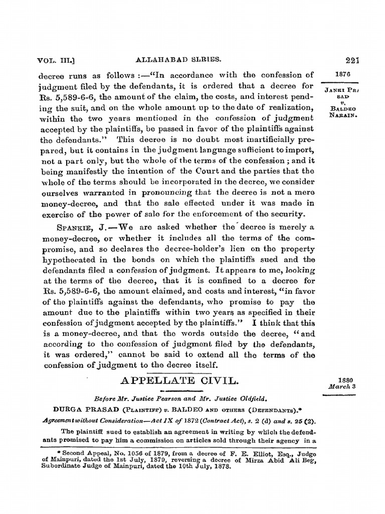 Durga Prasad VS Deep Chand PDF Lawsuit Conveyancing Case Law Durga Prasad Vs Baldeo Baldeo (1879) dealt with the issue of consideration in a contract. This landmark judgment deals with consideration under section 2 (d) of indian contract act, 1872 (ica) and agreements made. In this case, durga prasad and baldeo entered into an agreement where baldeo agreed to pay durga prasad money in return for the transfer of some property. Durga spent a. Case Law Durga Prasad Vs Baldeo.