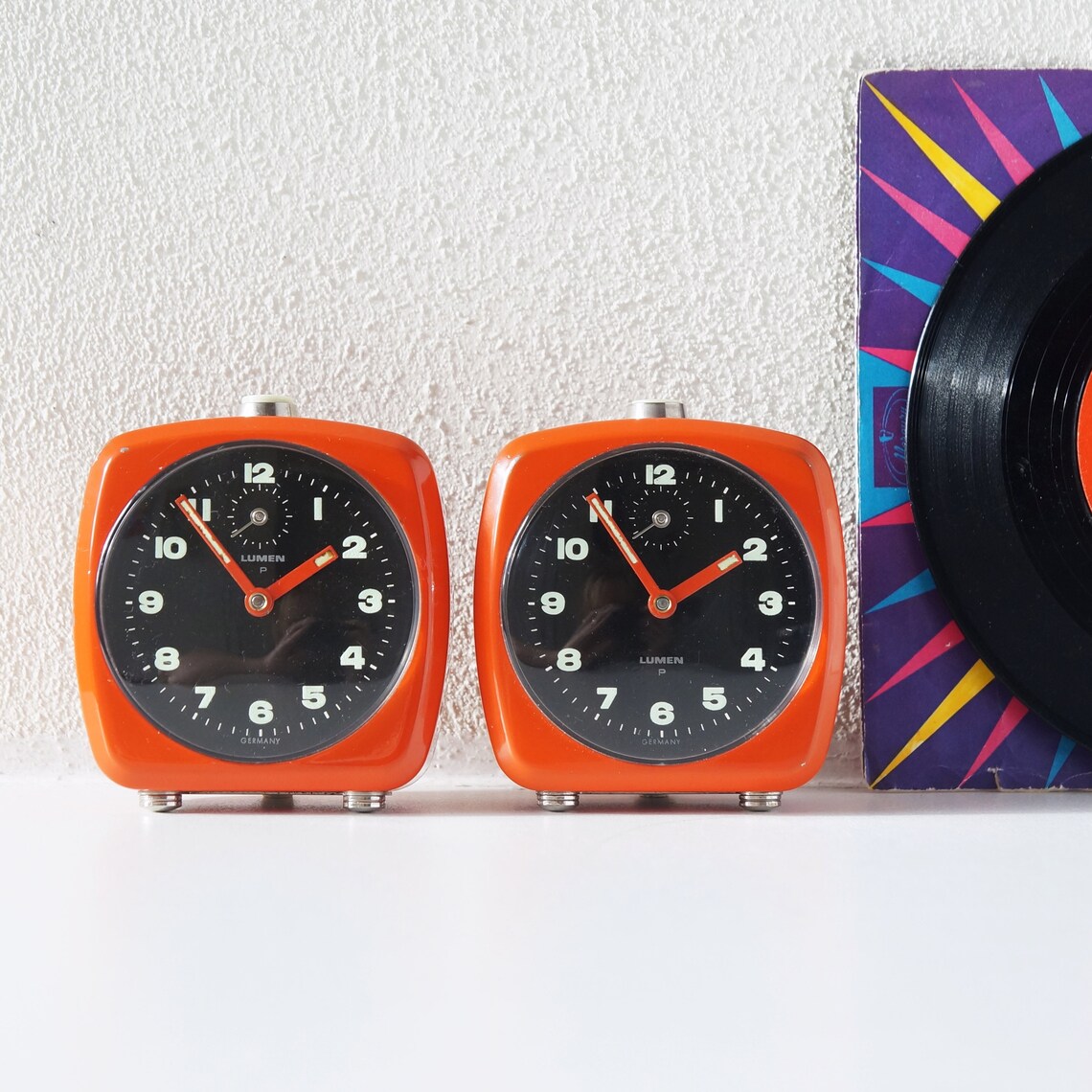 Pair of Orange Mid Century alarm clock by Lumen P Germany Etsy