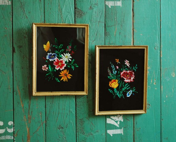 Reverse Paintings on Glass with Foil Pair of Floral by BingoBox
