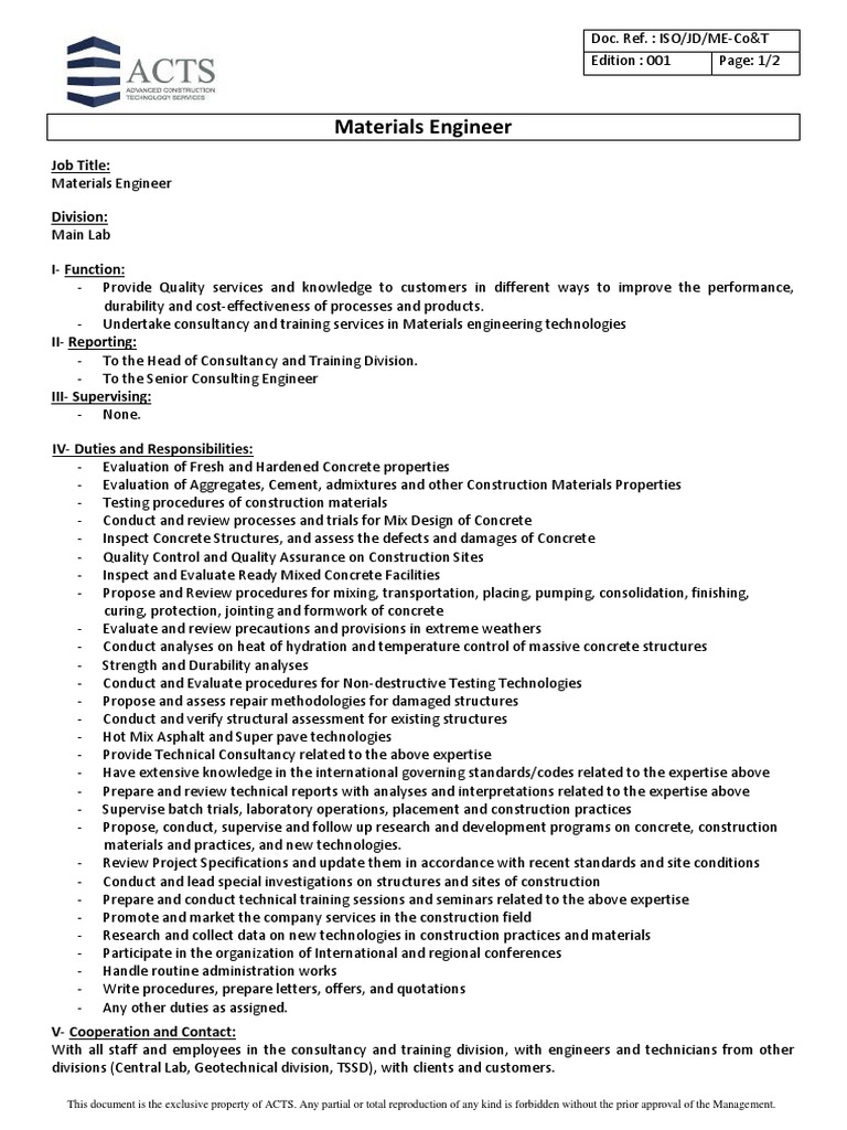 Materials Engineer Job Title PDF Concrete Engineering