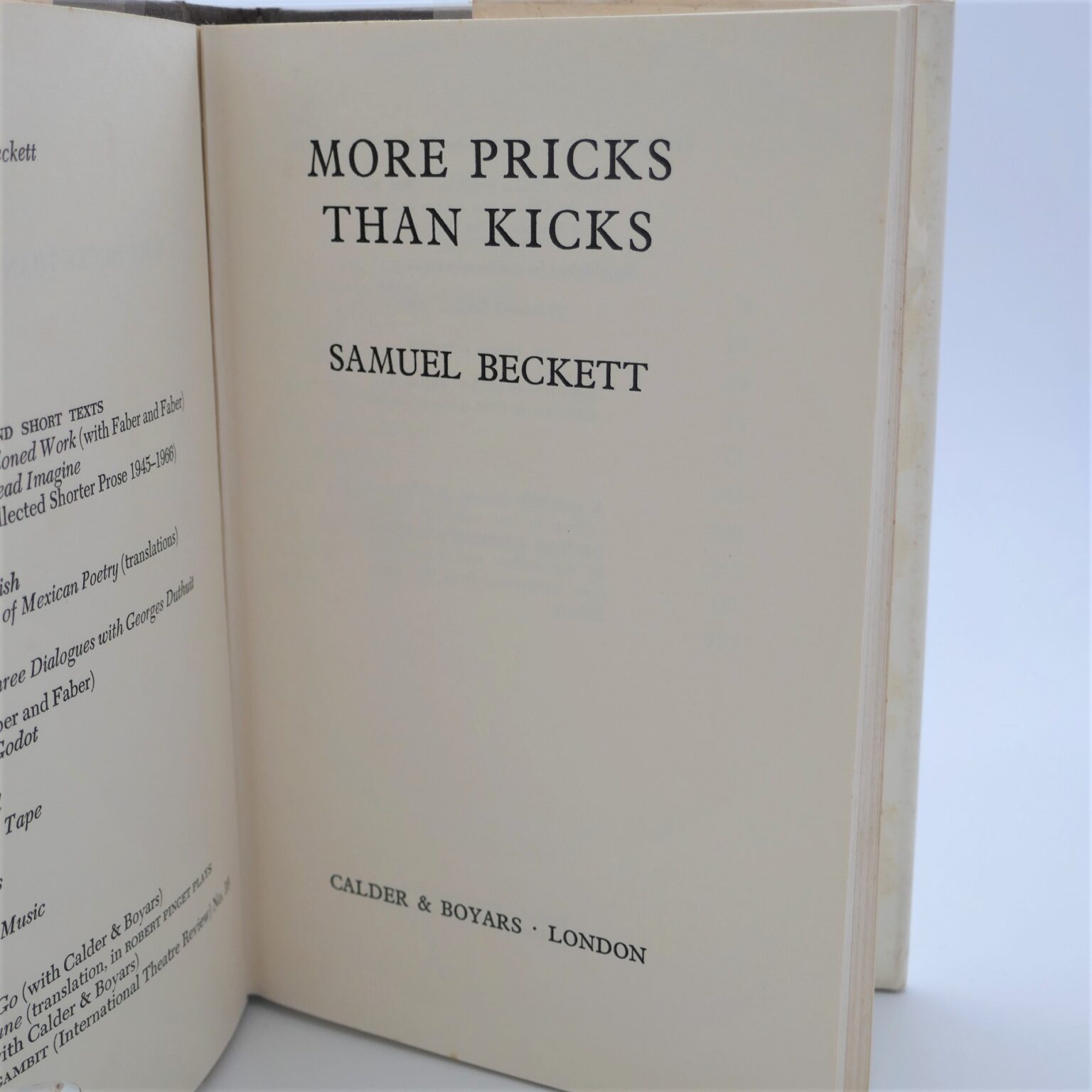 More Pricks Than Kicks 1st Edition by Beckett, Samuel Fair Hardcover More Kicks Than Pricks more pricks than kicks, beckett's early tragicomic masterpiece, is a collection of stories about belacqua, a student in dublin in the twenties, his adventures,. more pricks than kicks. Samuel beckett, the recipient of the 1969. more pricks than kicks : His first published work of fiction (1934), more pricks than kicks is a set of ten interlocked. More Kicks Than Pricks.