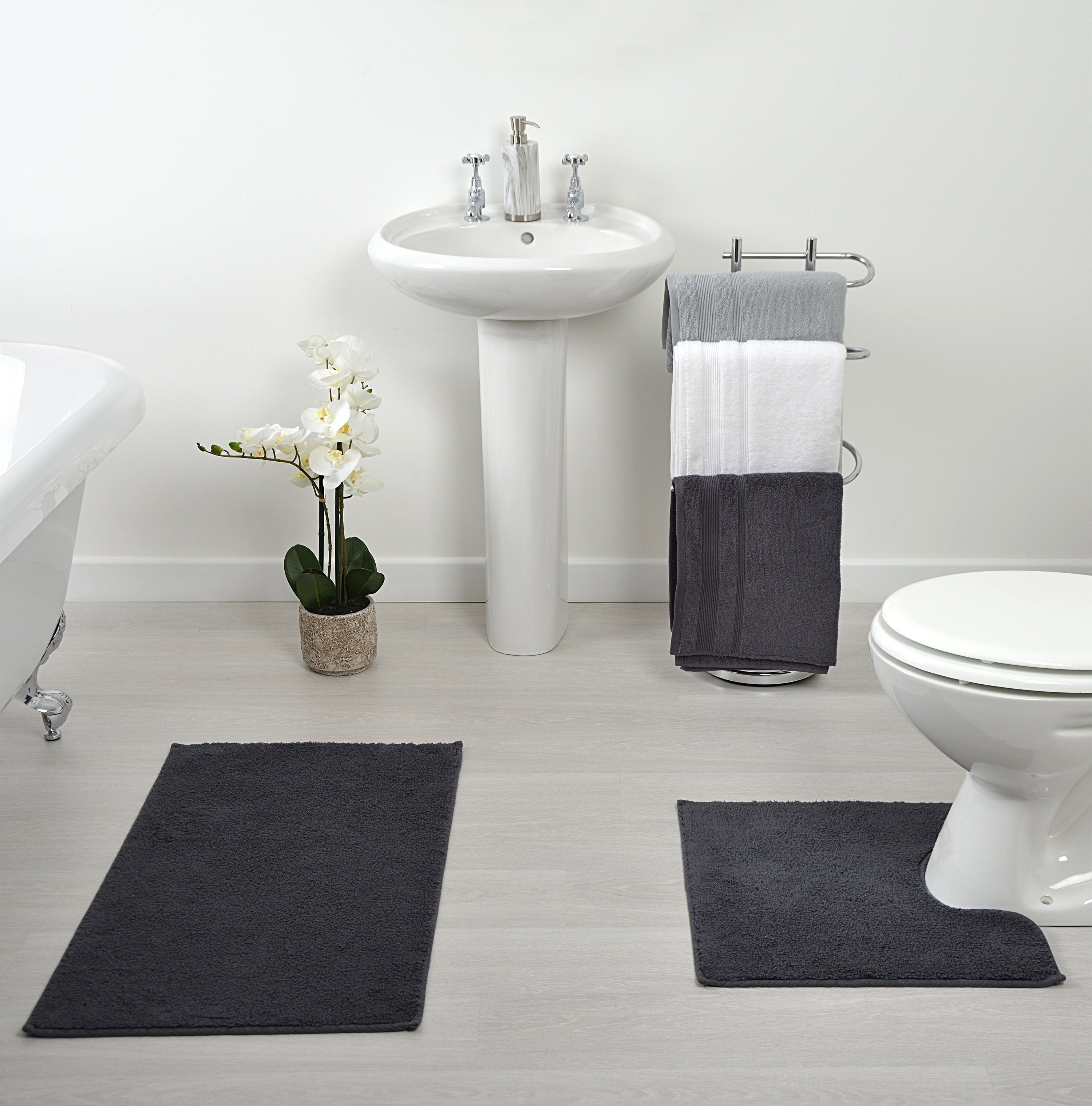 Homescapes Spa Supreme Luxury White Bath Mat and Pedestal Set DIY at B&Q Bath Mat And Pedestal Set White Add comfort and style to your bathroom with this supersoft 2 piece bathmat set. Bring a touch of comfort to your bathroom floor with luxurious pedestal mats from this range. Paradise star block memory foam bath mat extra absorbent, soft & comfortable, non slip bathroom rug and pedestal bath mat set. Keep your feet off cold, slippery floors in bathrooms,. Bath Mat And Pedestal Set White.