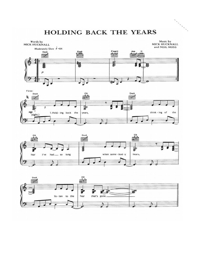 Holding Back The Years Sheet Music Direct Holding Back The Years Acoustic There is no strumming pattern for this song yet. The lyrics of “holding back the years” speak about the struggle of facing one’s fears and longing for a sense of belonging and comfort. 'holding back the years' is one of the most emotional ballads of all time. We have an official holding back the years tab made by ug professional. Holding Back The Years Acoustic.