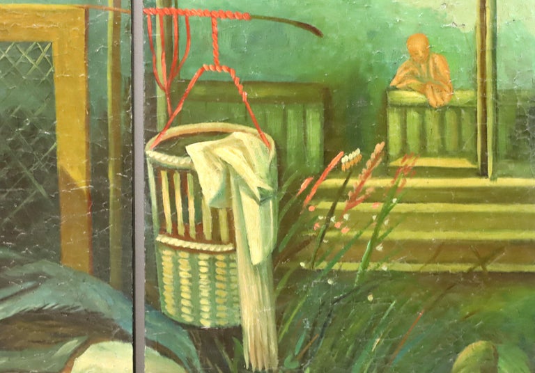 Mid 20th Century Hand Painted Chinese Art Wall Panels Set of 4 For