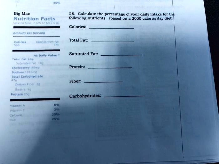 SOLVED Big Mac Nutrition Facts n 07 Calculate the percentage of your