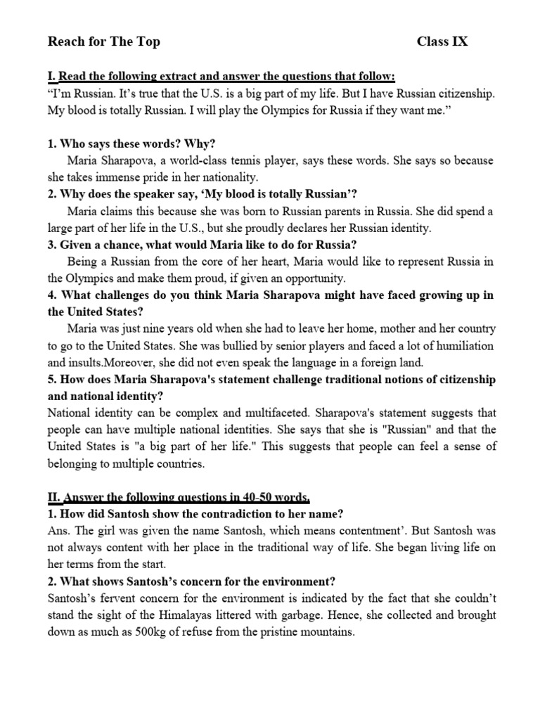 Reach For The Top Notes 1 PDF