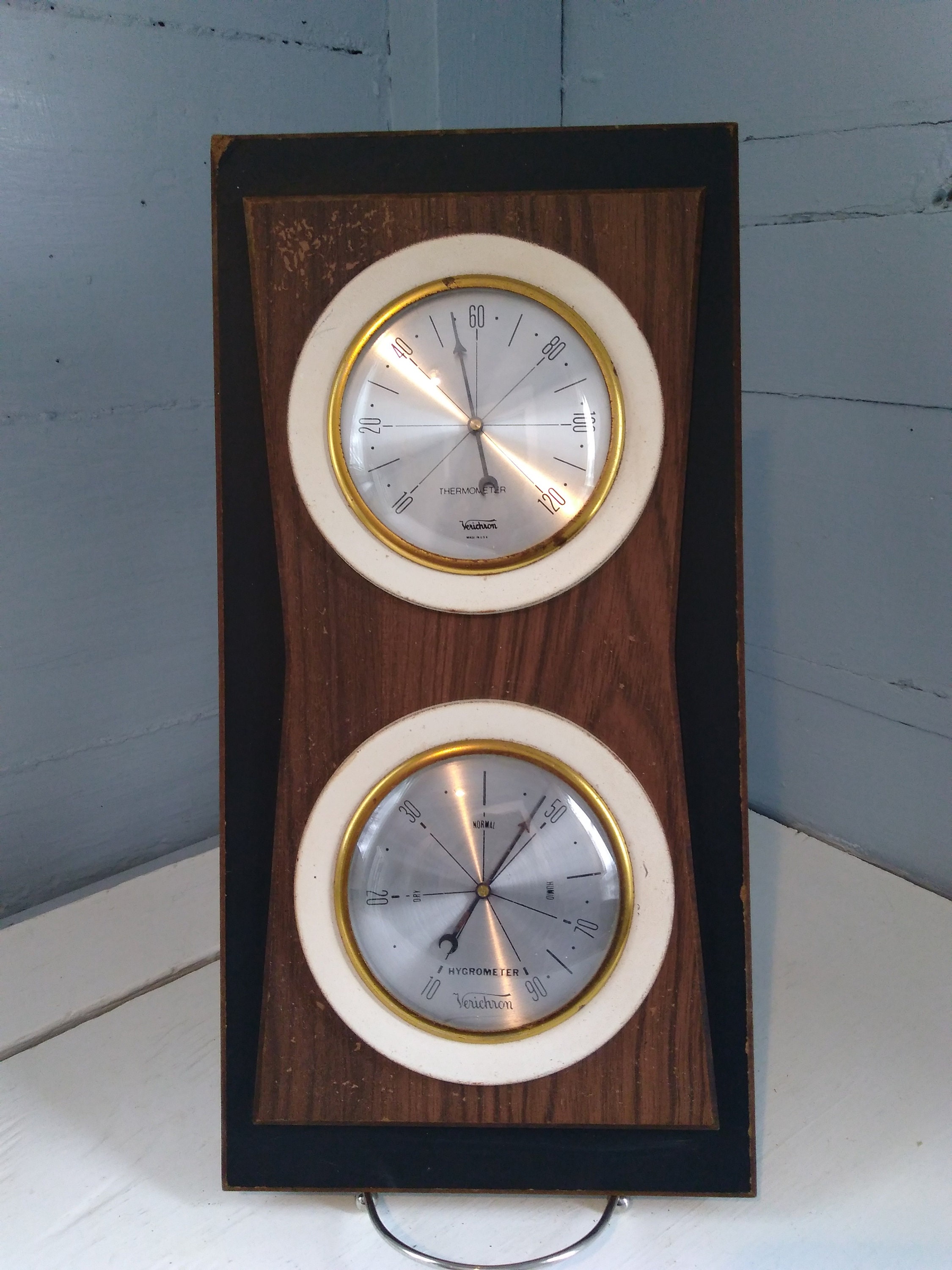 Verichron Barometer Thermometer and Hygrometer EBTH Verichron Thermometer Sortiment om 50.000 varorbonus på varje köp about this item. buy 1970's verichron temperature thermometer vintage faux wood grain: Verichron Thermometer.