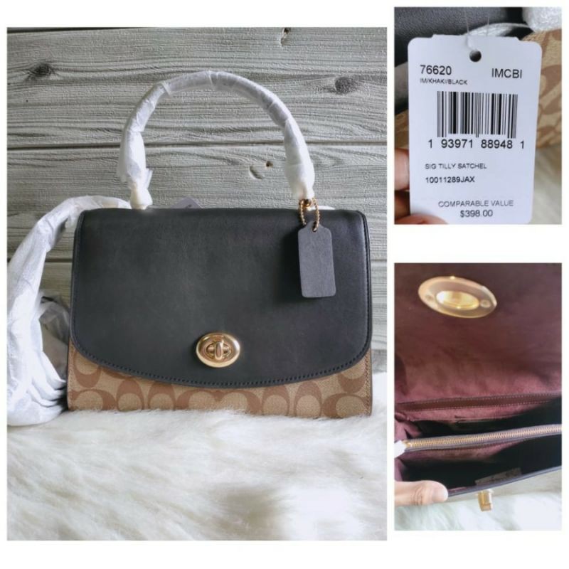 Jual Coach Tilly Top Handle Satchel Signature Khaki Black Shopee