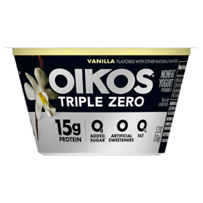 Oikos Triple Zero Vanilla 15g Protein, No Sugar Added, Nonfat Greek