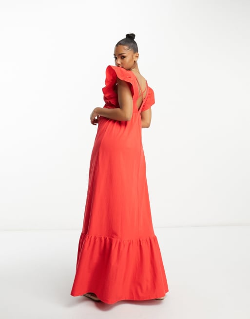 Miss Selfridge Robe babydoll longue en popeline Rouge ASOS