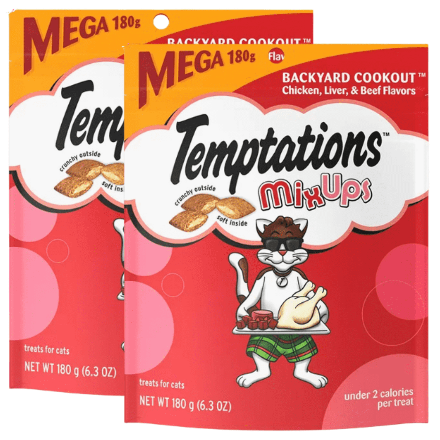Temptations Cat Treats Mixups Temptations™ offers a variety of tasty cat treats, including crunchy, meaty and lickable options. Each of these chicken, liver & beef flavored treats has less than 2 calories and provides an irresistible combination of both crunchy and soft textures. Check out all mix ups temptations™ cat treats for your feline friend that are sure to make your cat's mouth water.. Temptations Cat Treats Mixups.