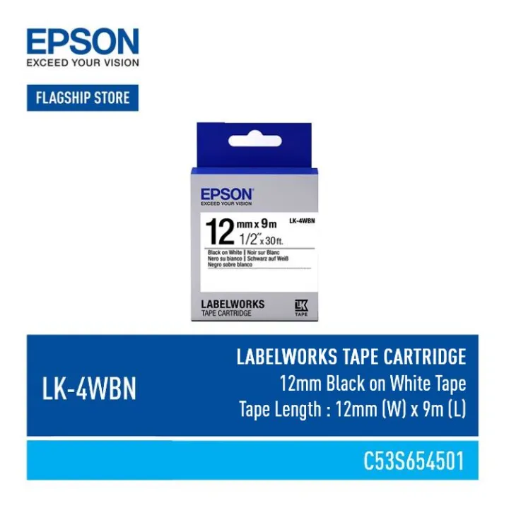 Epson LK4WBN / LK4WRN / LK4WLN / LK4SBM / LK4KBM / LK4TBN / LK Epson Label Tape Lk-4Wbn It’s available in a wide range of widths, from 6mm to 36mm, with a choice of red, blue or black text. create extraordinary labels with epson labelworks lk tape cartridges. 4.8 13 ratings. Our most popular tape cartridge, ideal for all of your. $1773 ($0.59 / foot) about this item. Epson Label Tape Lk-4Wbn.