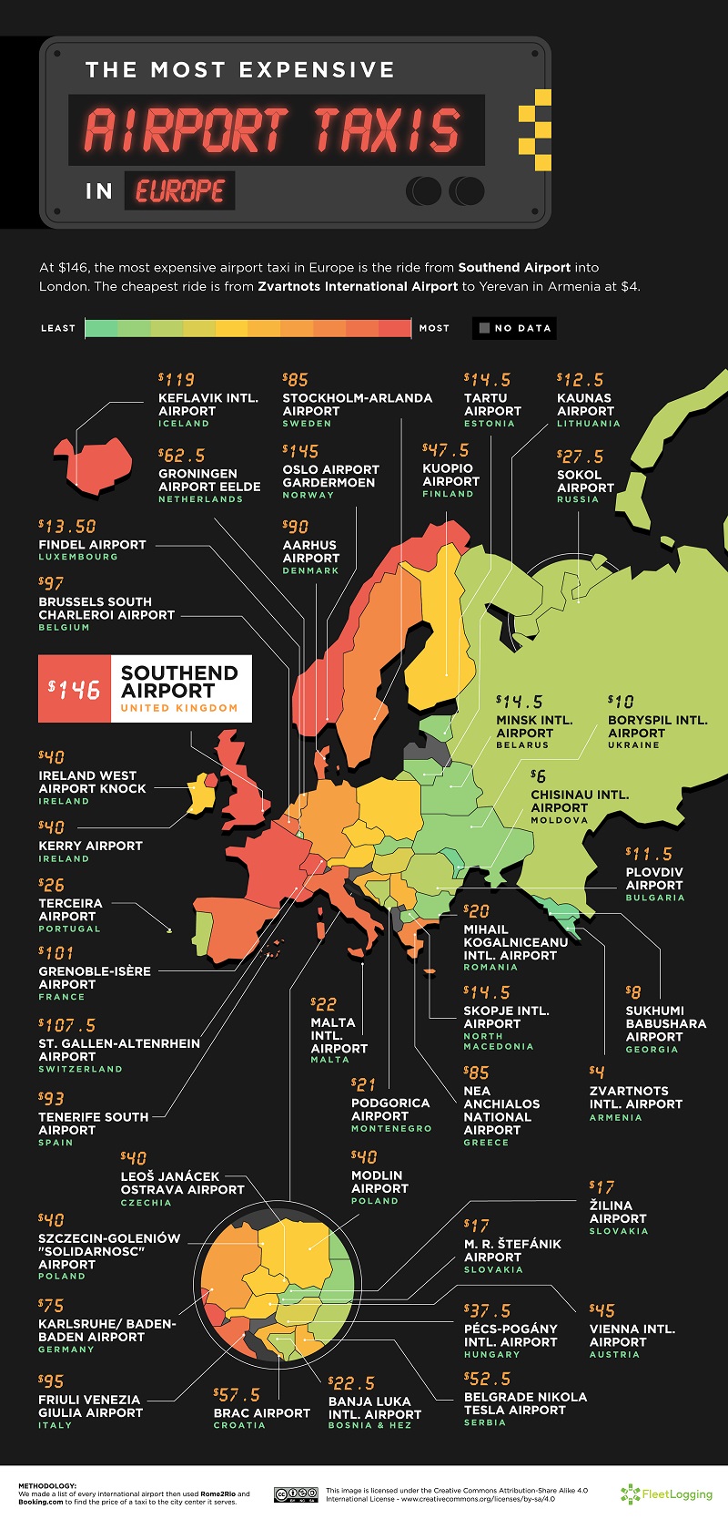 Where are the most expensive airport taxis in the world
