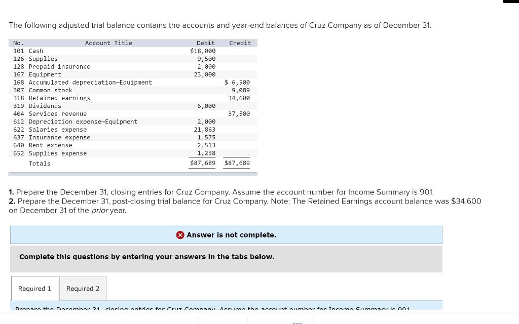 Solved Prepare the December 31, postclosing trial balance Retained Earnings Post Closing Trial Balance The goal is to make the posted balance of the retained. At this point, the accounting cycle is complete, and the company can begin a new cycle in the next period. Retained earnings appear on the trial balance as part of equity and represent the link between the income statement and the balance. The closing entries are the journal entry. Retained Earnings Post Closing Trial Balance.