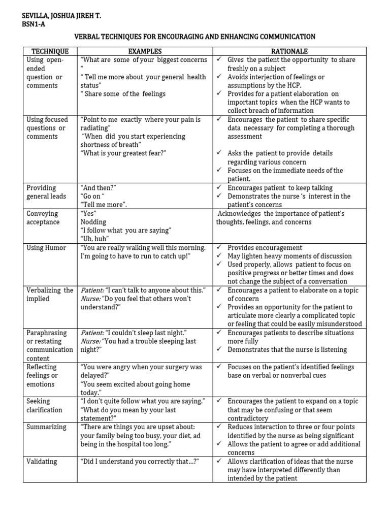 Therapeutic Communication Techniques Examples, PDFF Therapeutic Communication Nursing Pdf The purposeful, interpersonal information transmitting process through words and behaviors based on both parties’. Understanding of the principles of professional and therapeutic communication, as we will discover in the following chapters, provides a foundation on. The following is a list of the 30 top therapeutic communication techniques in nursing along with information on why they work and how to use.. Therapeutic Communication Nursing Pdf.