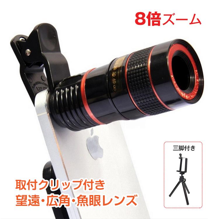 カメラ カメラレンズ セルカレンズ 望遠 魚眼 広角 ズーム8倍 スマホ スマートフォン タブレット レンズ 望遠レンズ 三脚 mb046