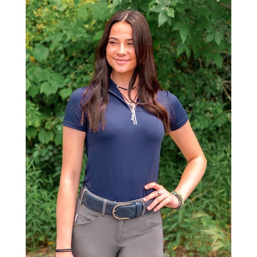 The Tailored Sportsman Ladies Icefil Short Sleeve Sunshirt (Navy/White