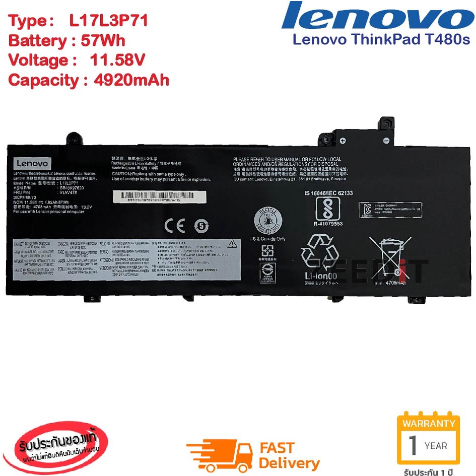 รอ10วัน Battery Notebook Lenovo ThinkPad P53S T480S TP00092A L17L3P71