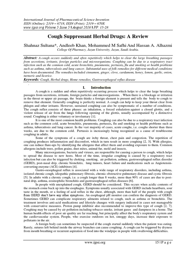 Cough Suppressant Herbal Drugs A Review PDF Gastroesophageal Reflux Disease Cough