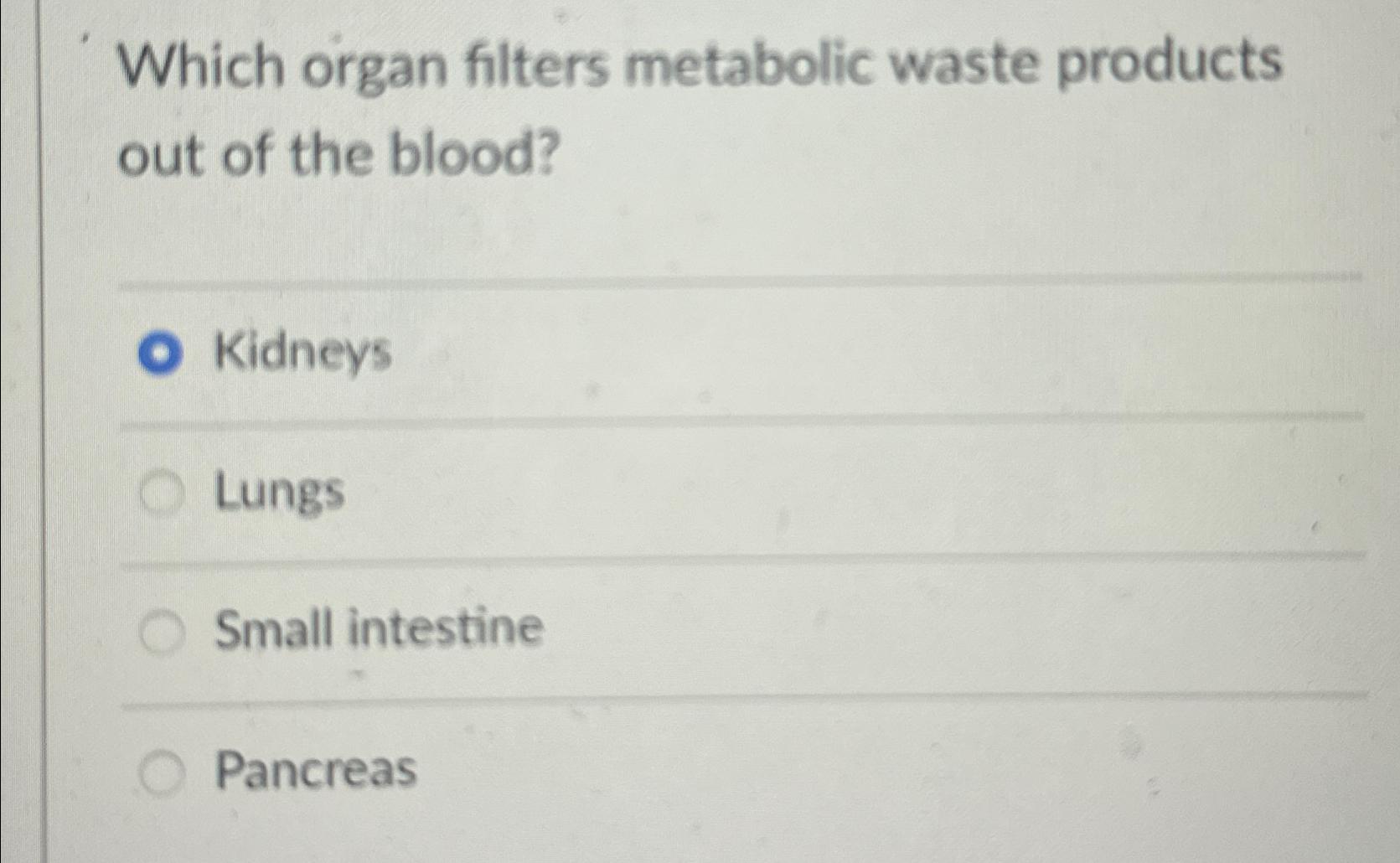 Solved Which organ filters metabolic waste products out of